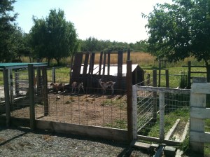 In the end, my dog pen is looking beautiful, the asshole goats are still trapped in the pen (or so they want me to believe), and I learned a valuable lesson about letting a child play in a neglected dog pen (wow, that sounds bad. You think I’d have had more sense than that in the beginning). And so it begins. Today my body is sore, but my dog is sleeping in a weed free pen. Sounds like a good trade off to me!