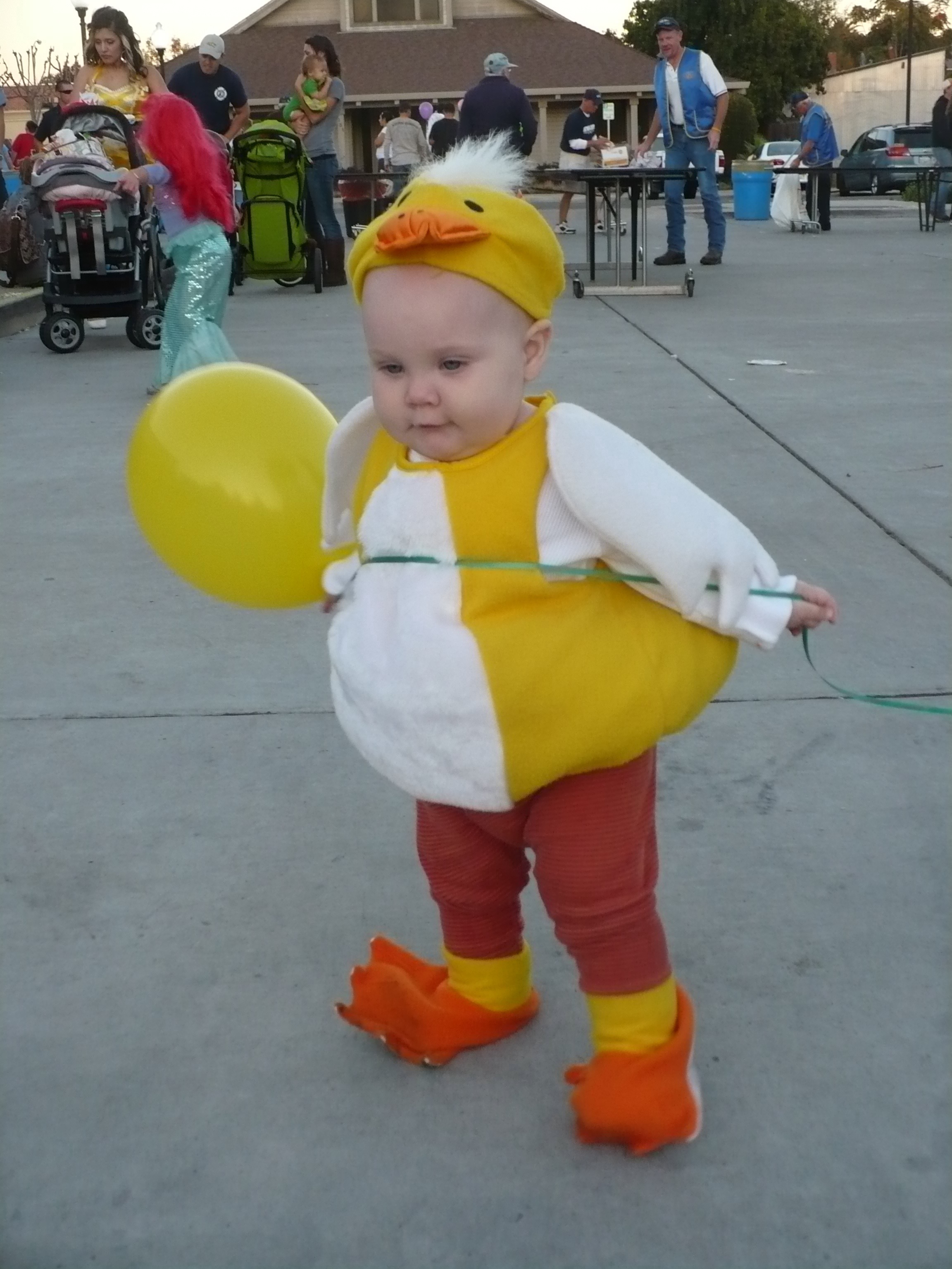 Last year I found Halloween snuck up on me again, and this time I had the pressure of not only clothing myself, but supplying my adorable just walking not quite one year old with a costume. I would love to tell you that I sewed a beautiful age appropriate, cute as a button get-up, however, that would be a big fat lie. In reality, Taylor picked up a duck outfit at the local K-Mart for $20 two days before Halloween, and we called it a day. It ended up being pretty cute, since Josephine was such a new walker that she had the duck waddle down. All in all, other than the guilt of buying a costume (because I apparently hold myself to ridiculous standards and believe I have to make a costume for it to be cool. I am a dumb ass) it was pretty darn perfect.