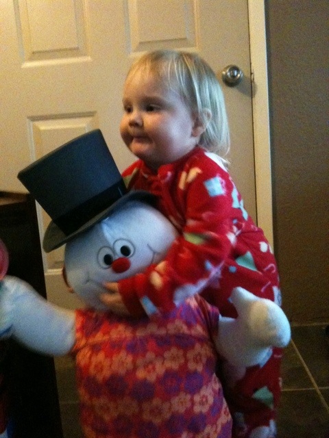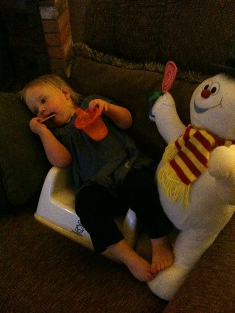 Now, if I can only find a gentle way to wean her from her Frosty doll. I keep telling her Santa Is coming to take him to the North Pole. She is processing it, but this morning told me she plans to hide Frosty from Santa so he can stay at our house. I am afraid I am setting her up for some sort of holiday PTSD. She’s going to subconsciously hate Santa for taking her friend away. Oh, the horror!