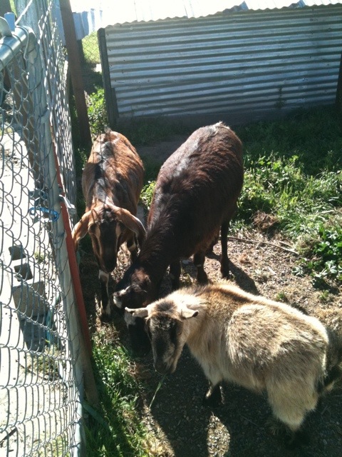 20120419-161305.jpgAnyways, as I sprinted across the pasture towards my goat water drinking two year old, I flung open the pasture gate and immediately tripped over said giant boots, falling on my left knee pretty freaking hard. As I fell, Duck (the goat) took her opportunity to leap over me out of the open gate into the horse pasture. Awesome. I jumped up, slammed the gate (as Billy (the goat) was hastily trying to make his escape and Giselle (the Pygmy goat) was hot on his heals), explained to Josephine that that water was yucky, contained tiny ugly germs (thanks Yo Gabba!) that could make her sick, and told her to keep her hands out of the water, or else (or else what, I don’t know).